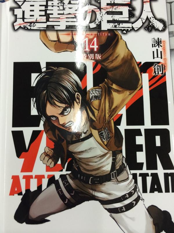 進撃の巨人 担当編集者バック 進撃の巨人 14巻は8月8日発売です 9日発売の別冊少年マガジン9月号には14巻の着せ替えカバーが付いてます こんな感じです Http T Co 0lji8ekssz